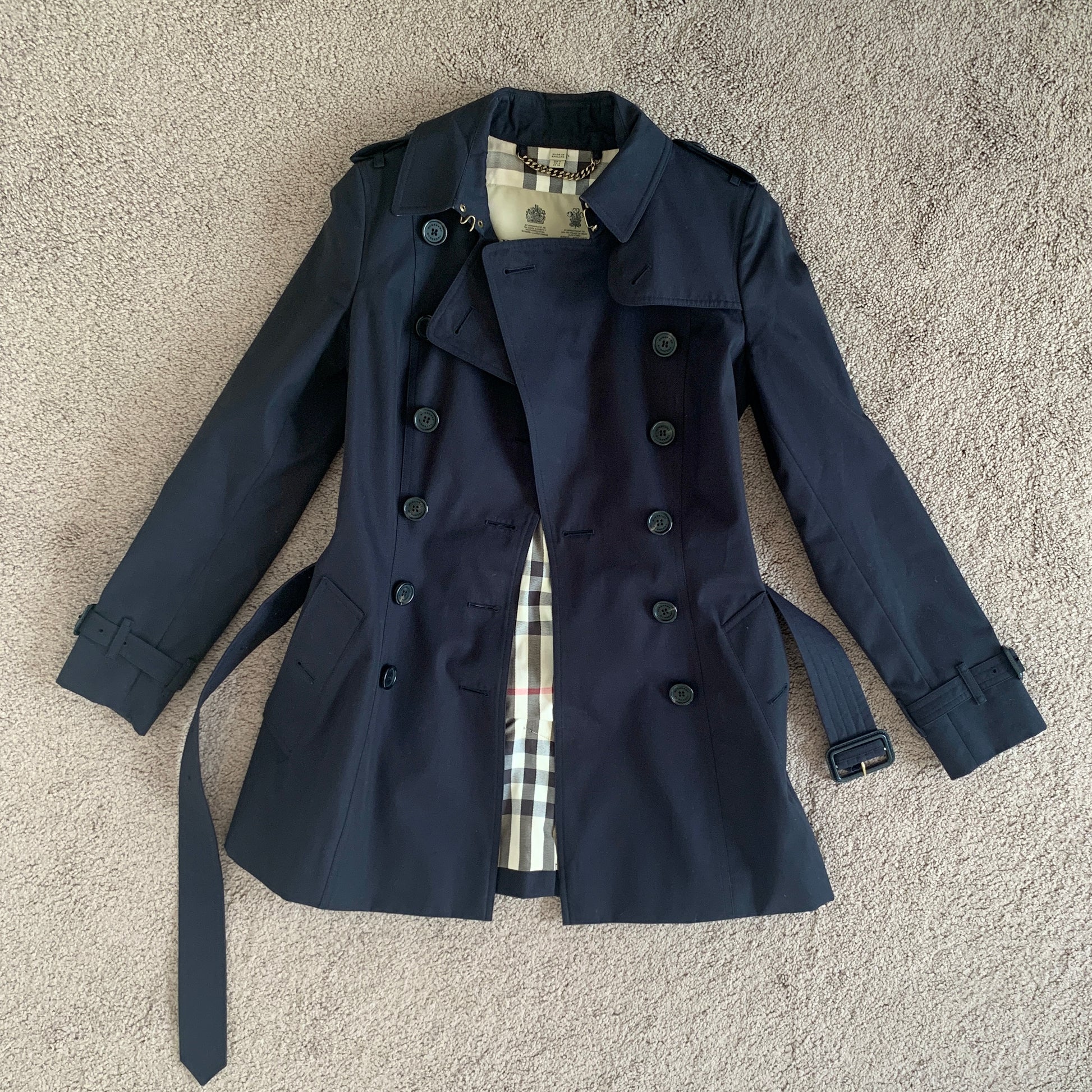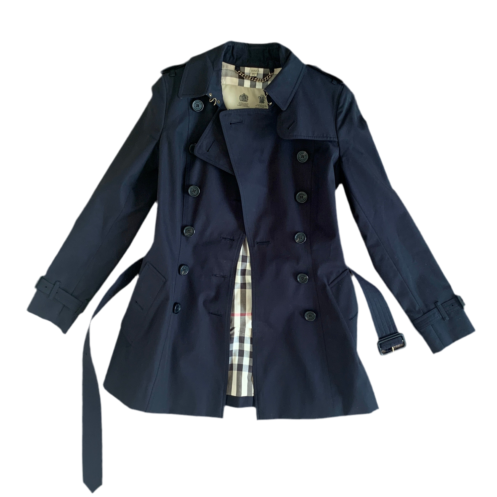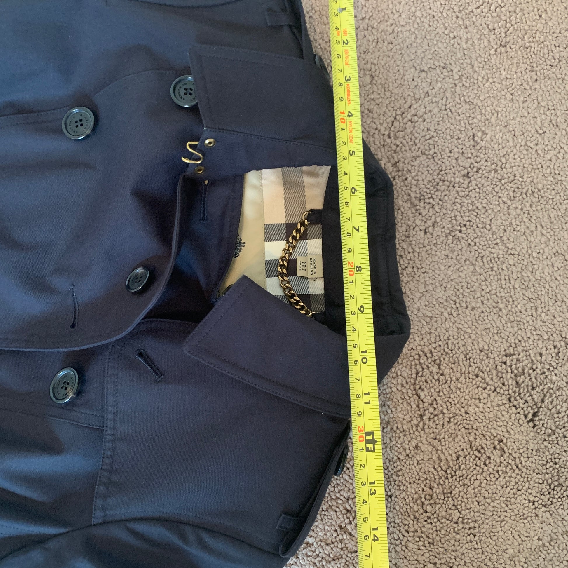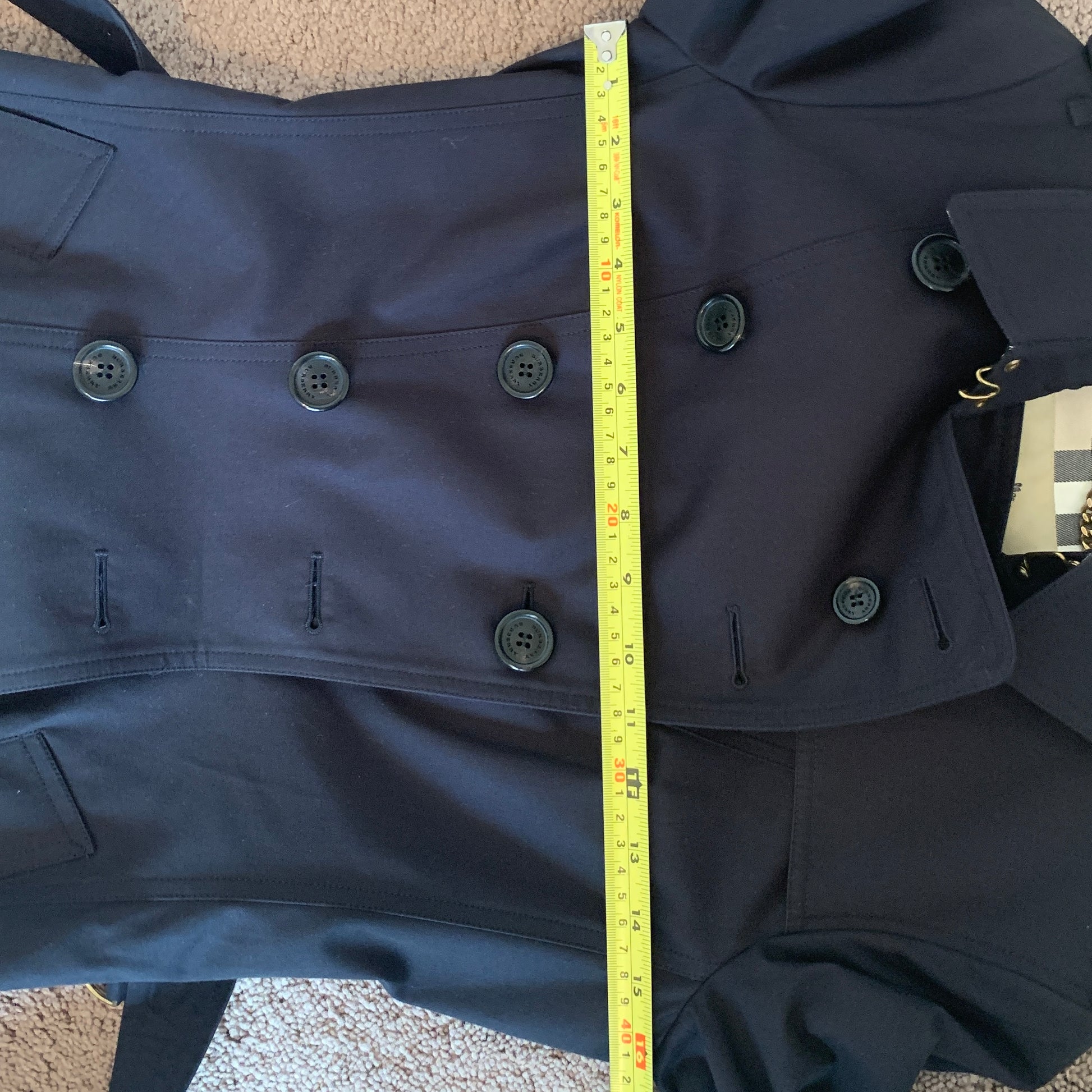 Authentic Burberry women’s trench coat new never worn in blue navy color in cotton. US size 4 as shown in tags and measurements shown in pictures.