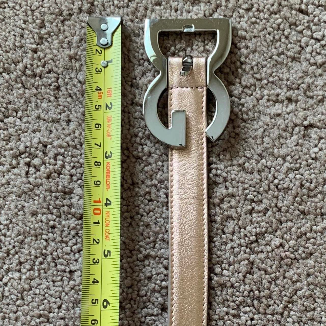 Authentic Dolce & Gabbana first line leather belt in golden pink color with silver color DG logo buckle. Very small signs of use on buckle and belt as shown in pictures. Size 90 cm/36 inch on belt. Length without buckle is around 104 cm/40.94 inch and width around 2 cm/0.79 inch.