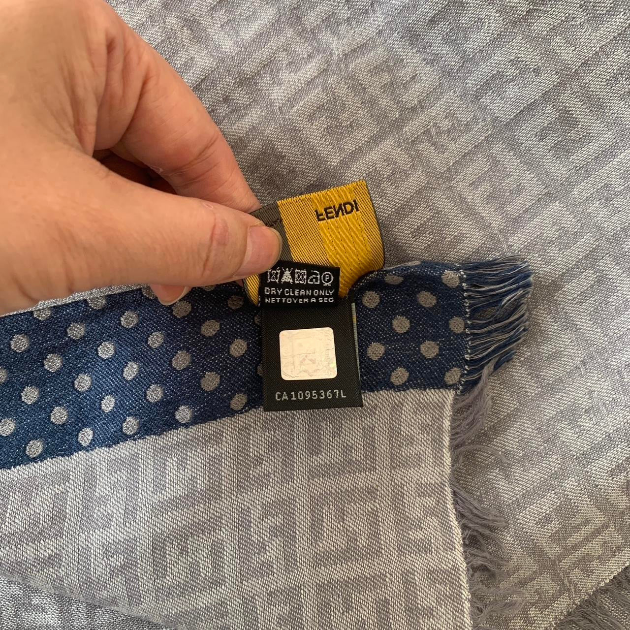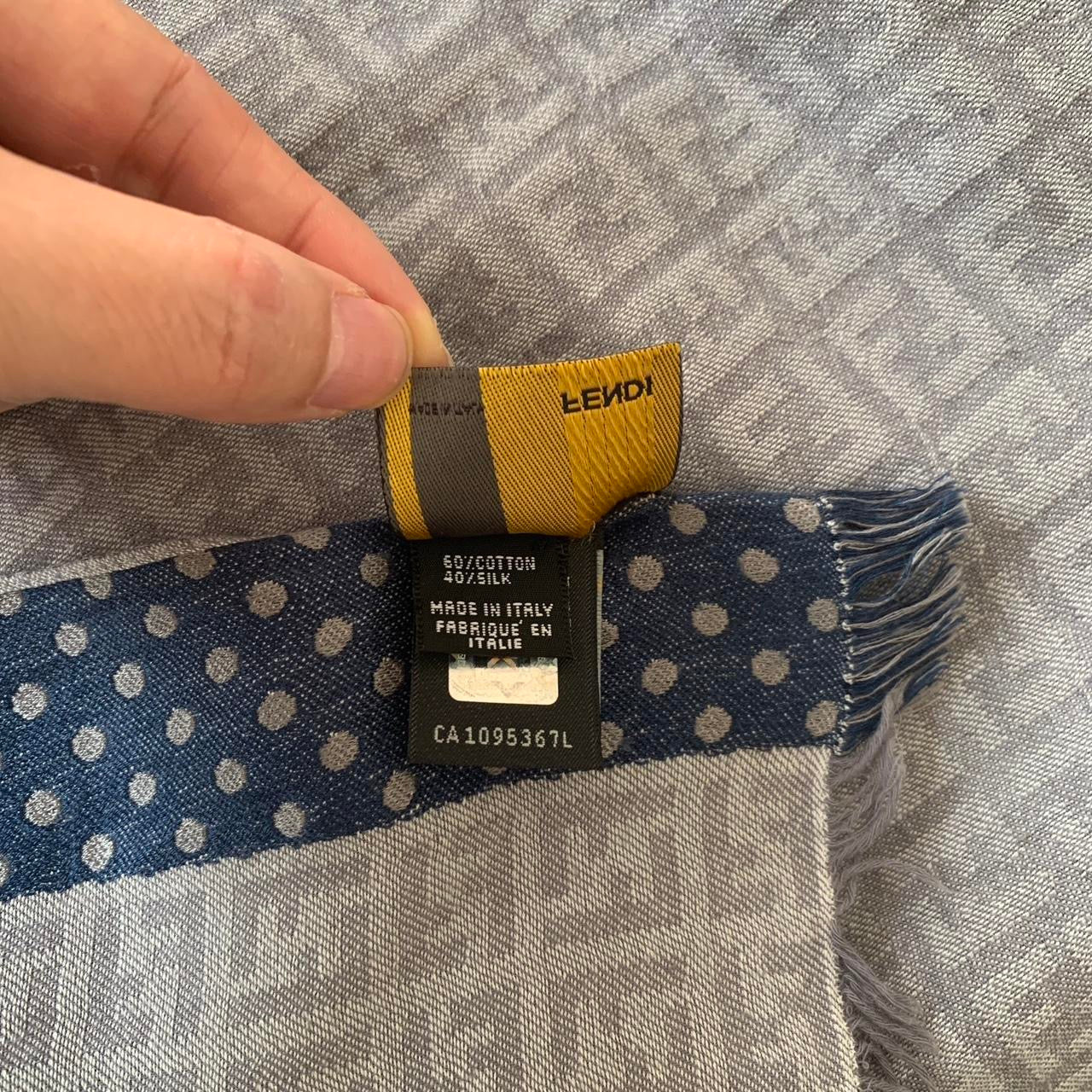 Authentic Fendi unisex All Season monogram cotton and silk scarf in excellent condition. Blue, light gray and gray color. 175x 34 cm around or 68.9x13.38 inches