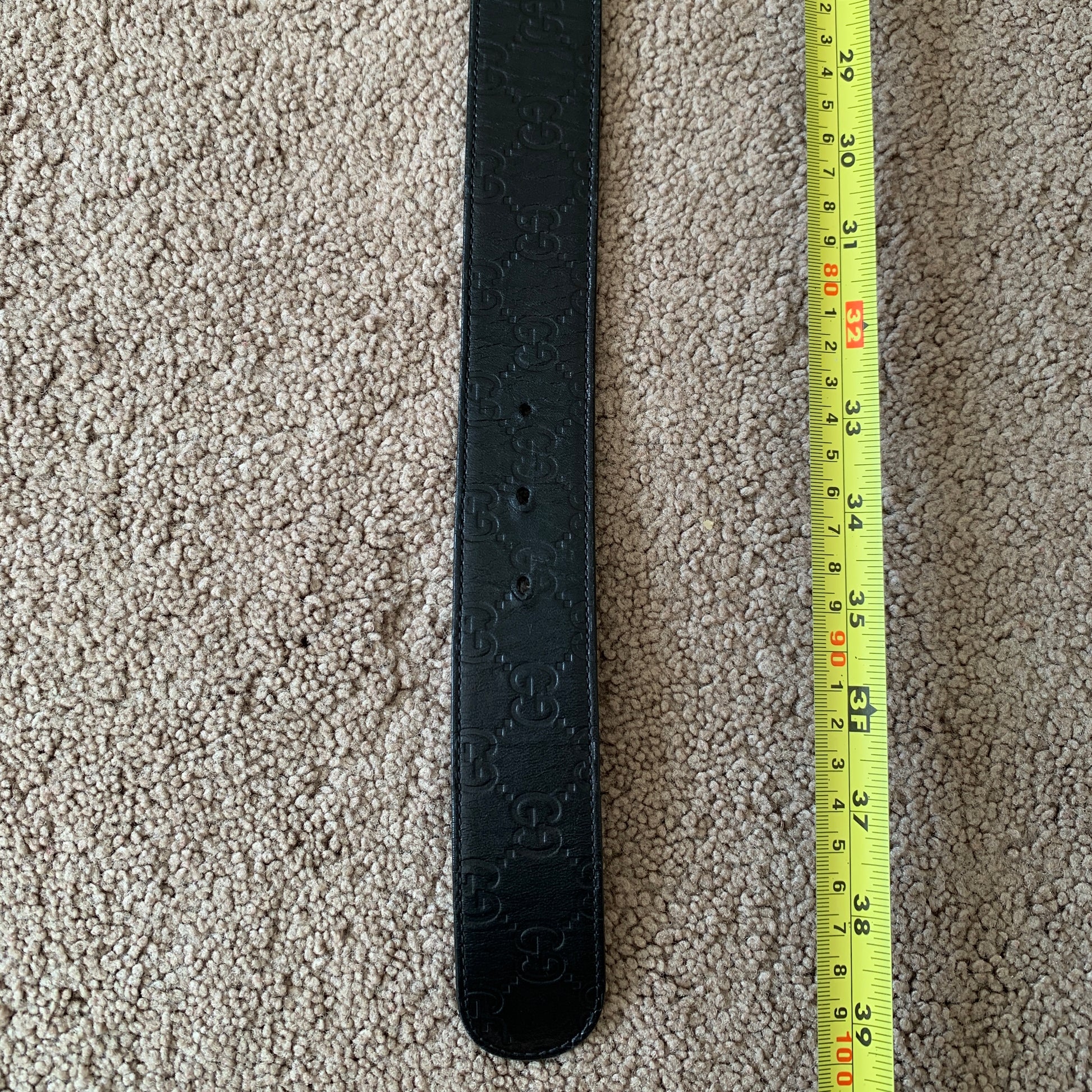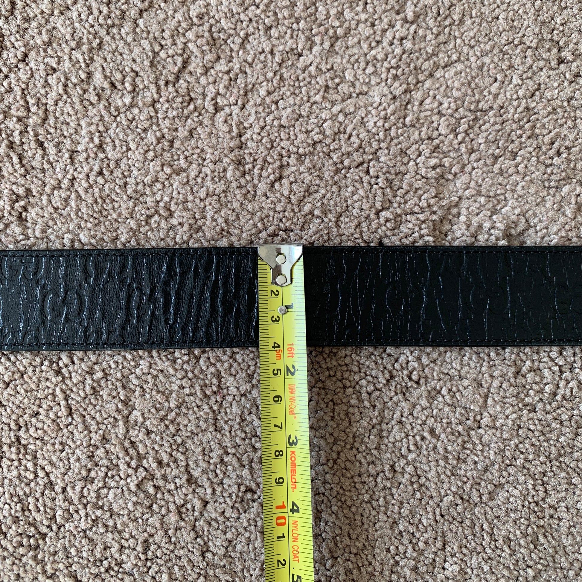 This unisex signature Gucci belt features elegant, iconic guccissima black leather. Adding a touch of luxury to any outfit, this belt is a must-have for those seeking a timeless and sophisticated look. Crafted with quality and expert craftsmanship, this accessory is a true statement piece.