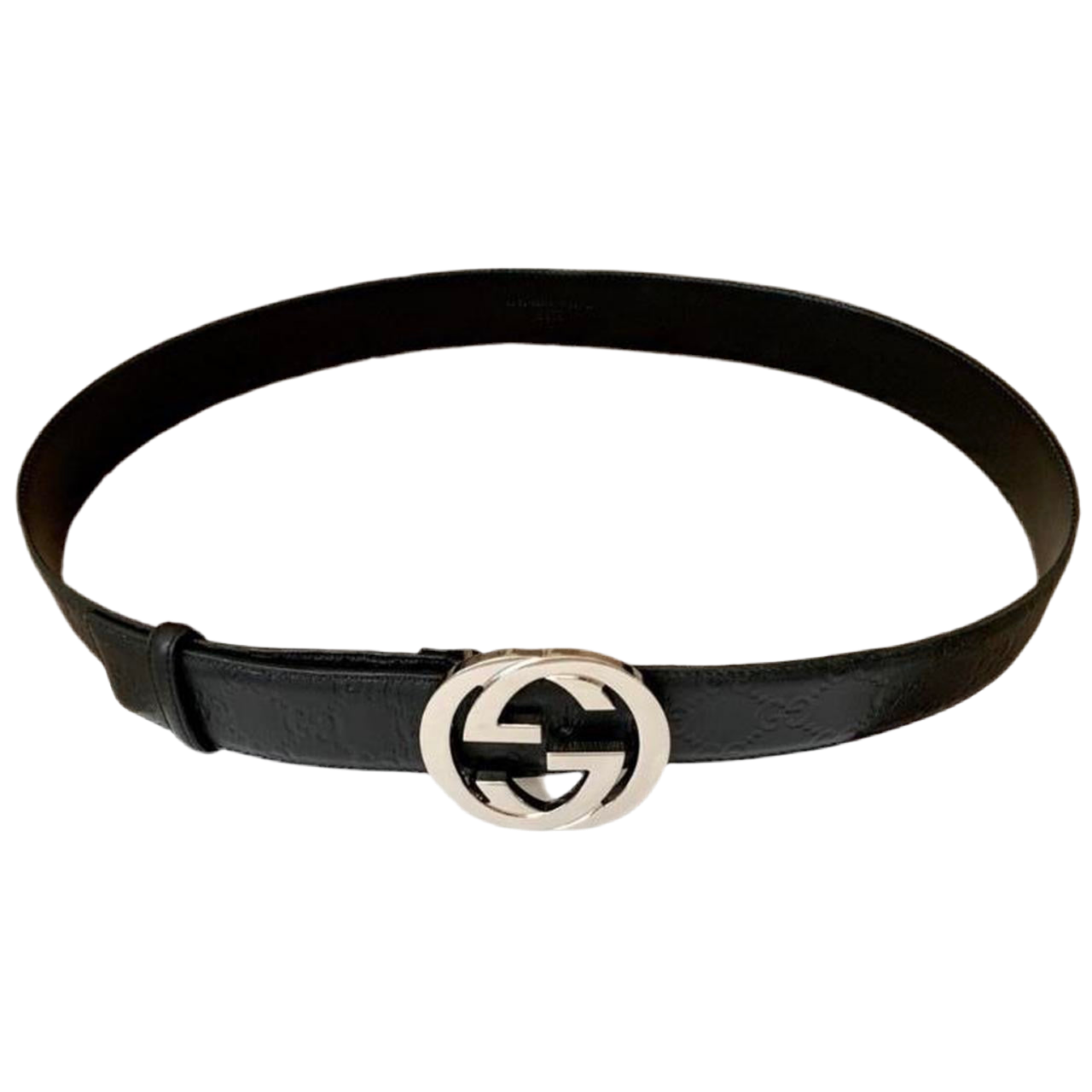 Upgrade your wardrobe with the Authentic GUCCI unisex signature monogram black leather belt. Crafted with class, this timeless piece features a silver interlocking buckle that exudes sophistication. Elevate any outfit and add a touch of luxury with this must-have accessory.