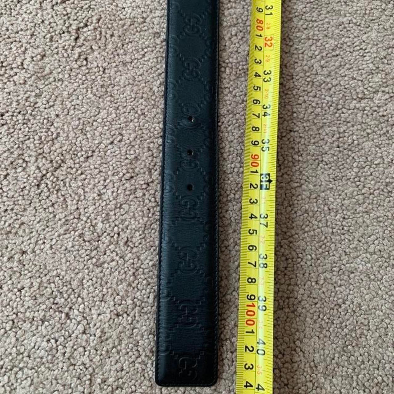 Authentic unisex Gucci GG monogram black leather belt with silver color buckle in excellent condition. Signs of use on buckle and belt as shown in pictures. Size 95cm/38 inch on belt. Length without buckle is around 104 cm /40.94 inch and width around 3.8 cm/1.5 inch