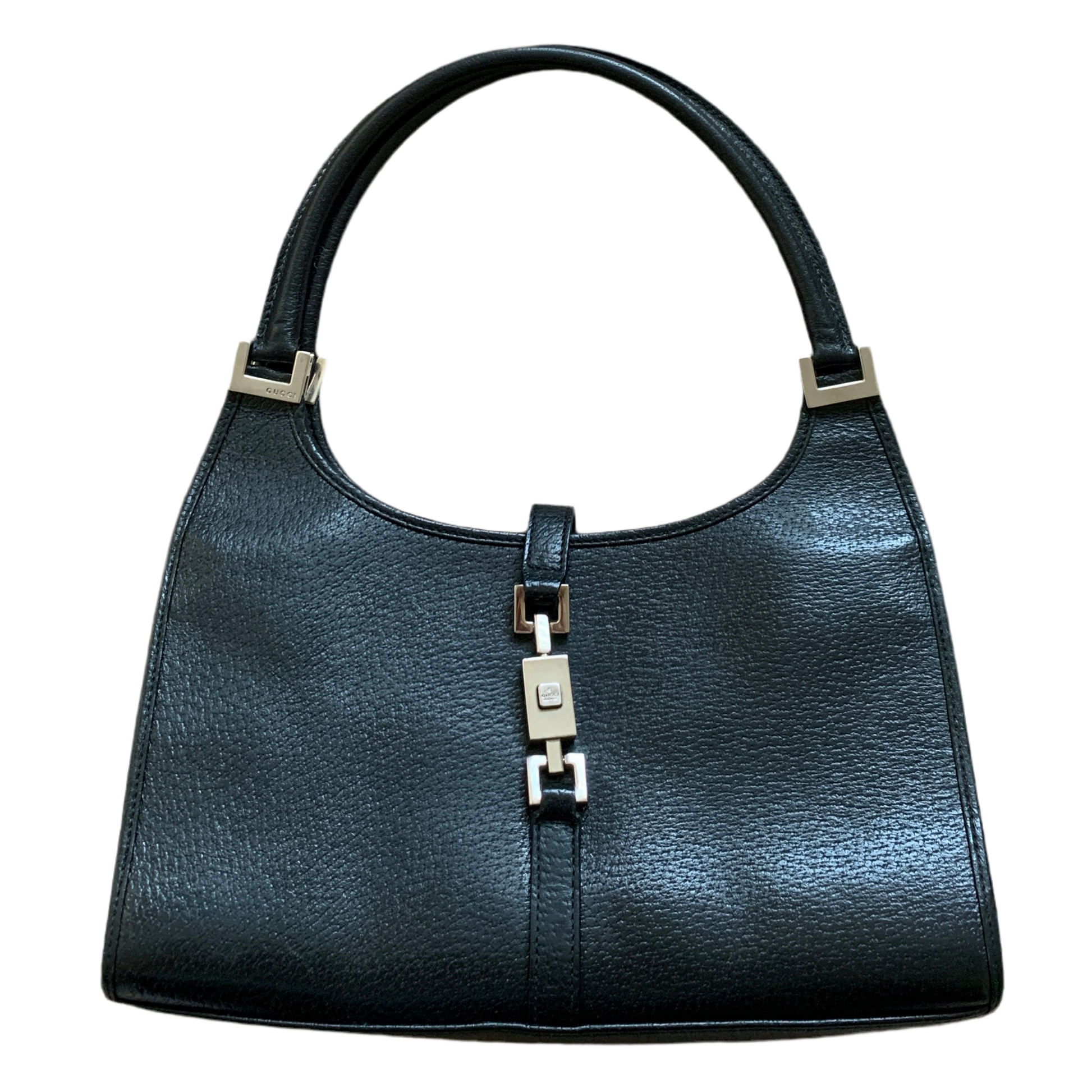 Experience a piece of fashion history with our Authentic Gucci vintage Jackie black leather bag. This iconic model bag is a collector's item, embodying the style and legacy of former First Lady Jackie Kennedy. Own a piece of timeless elegance and sophistication with this must-have accessory.