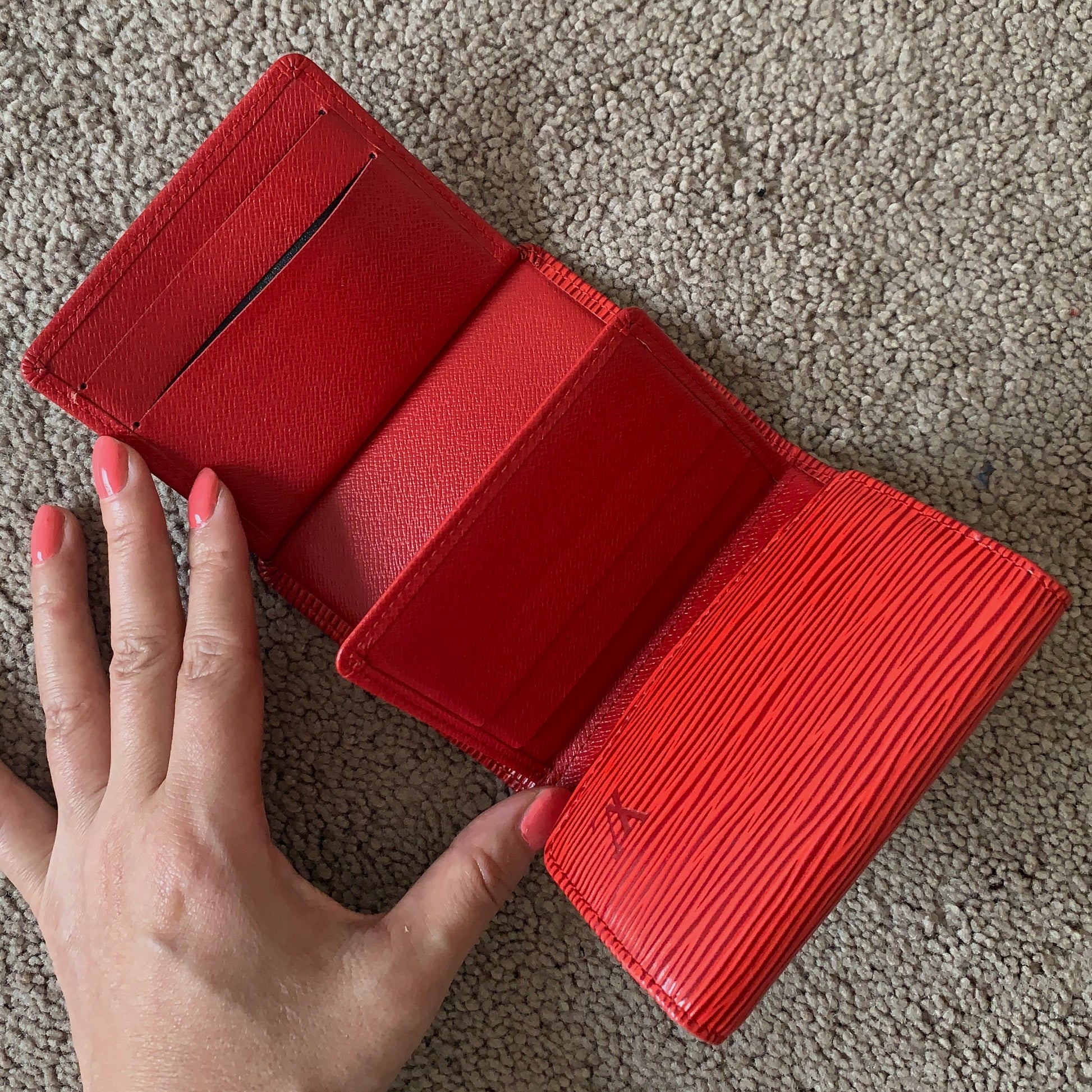 Authentic Louis Vuitton unisex epi red leather credit card holder wallet with 12 card slots in excellent condition. Signs of use as shown in pictures and measurements in pictures.