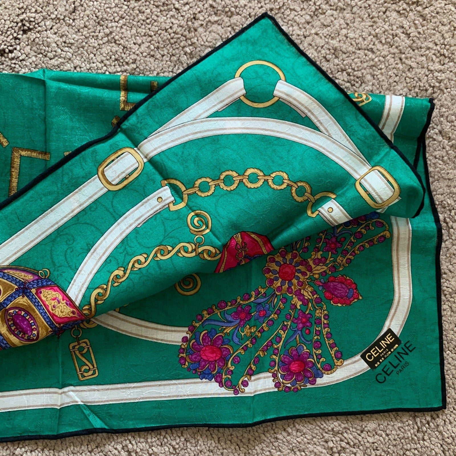 CL1021 Celine NWT women's cotton scarf foulard handkerchief