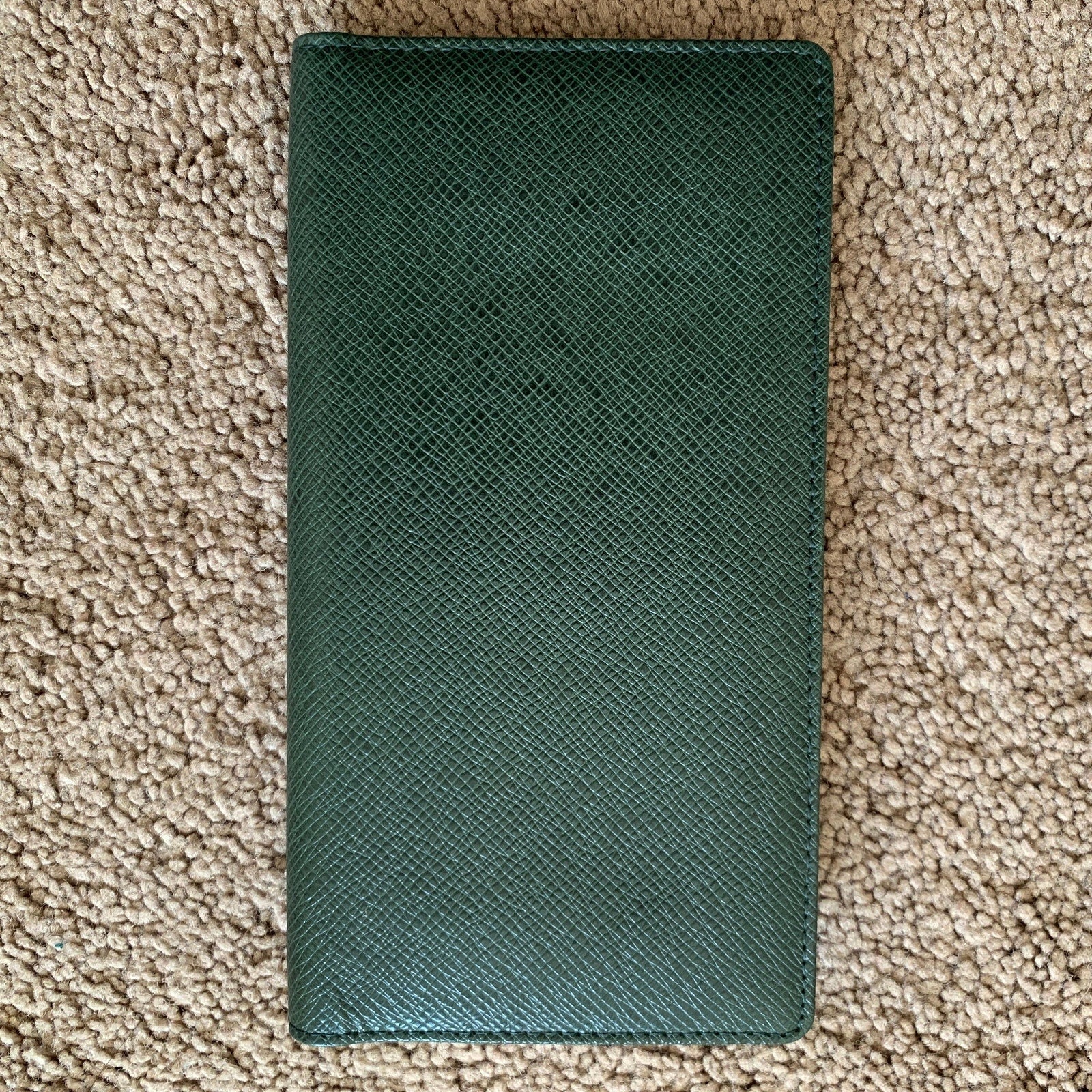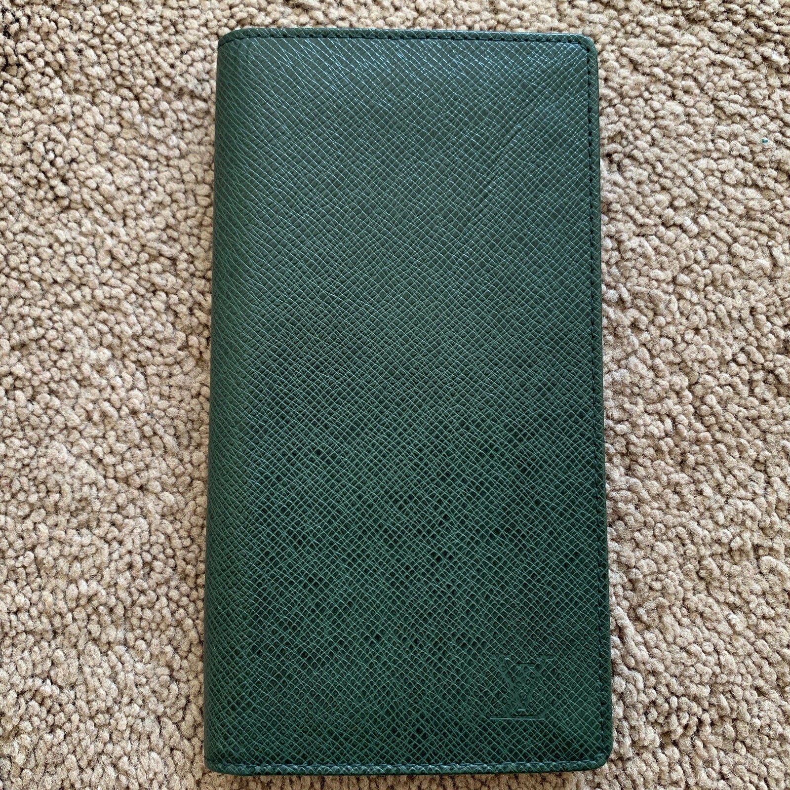 LV1052 Louis Vuitton men's green taige leather card holder wallet