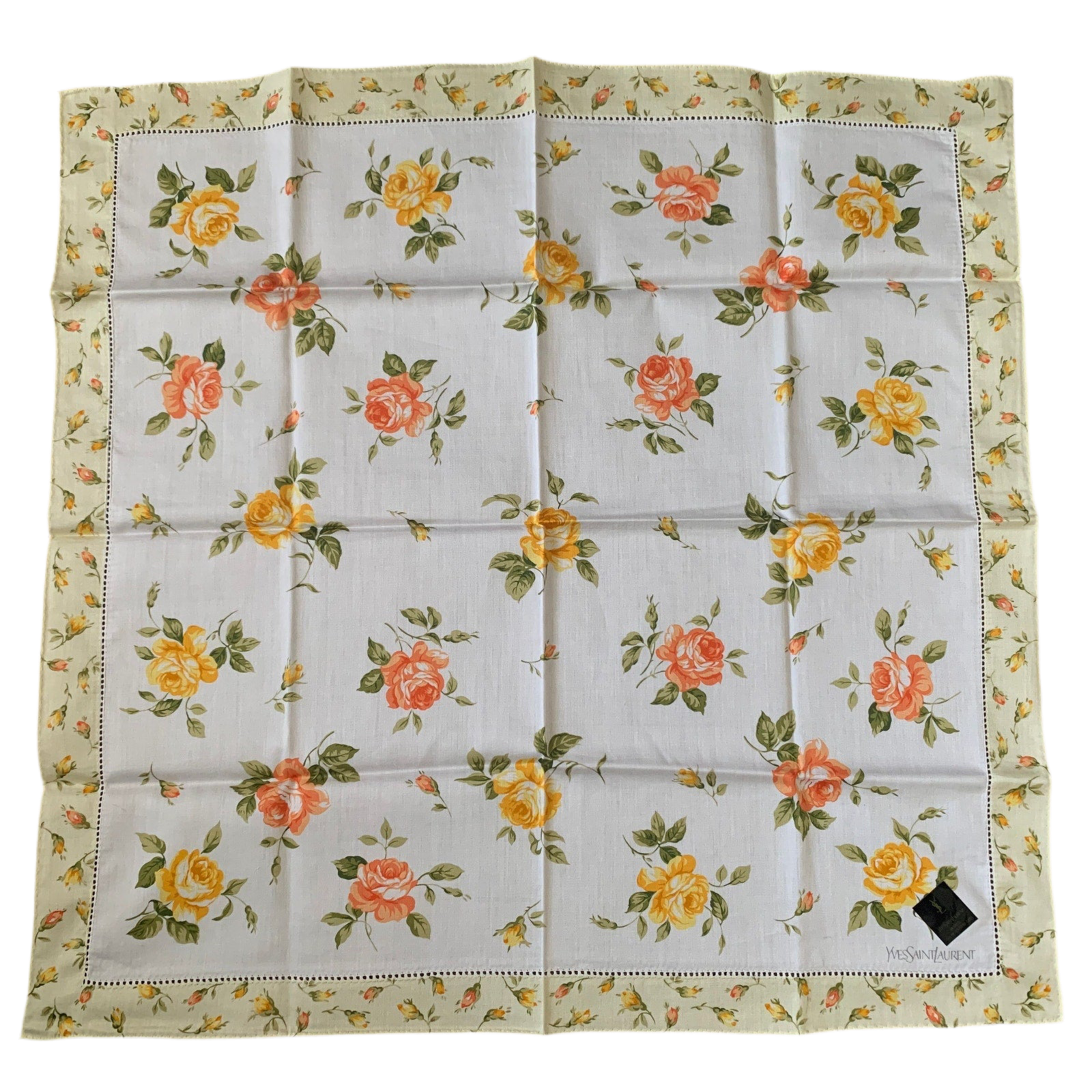 YSL Yves Saint Laurent NWT unused flower cotton handkerchief foulard scarf